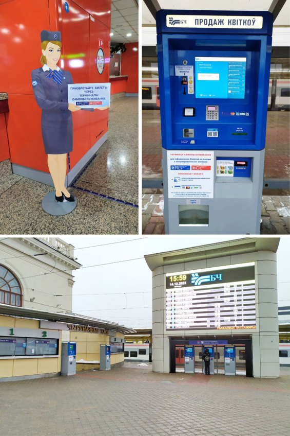 Электронные терминалы для продажи билетов. Пригородные кассы под табло.