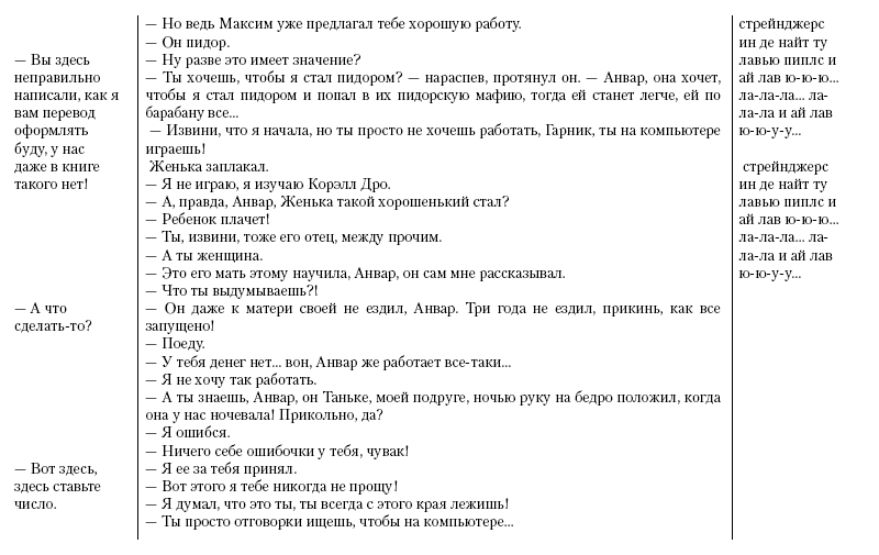 «Говорит что-то. Что он все вздыхает?.. Если не съедешь с общаги, дадим пизды… Хорошо, Сергей Петрович, через три дня… Хоть бы Нелли позвонила! Сколько платить корректору? Он же спрашивает».