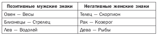 В астрологии есть еще понятие противоположных знаков, которое нельзя путать с полярностью, поскольку противоположные знаки всегда принадлежат к одной полярности. Сформировались противоположные пары, представленные в табл. 3. Они постоянно взаимодействуют – то притягиваются, то отталкиваются, но в принципе они как части целого дополняют друг друга.