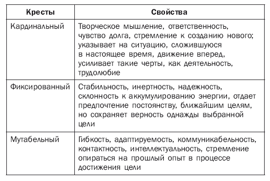 Следующий астрологический элемент – кресты, которые представлены тремя видами: