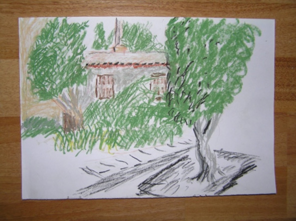 Примерно через месяц моя однокурсница разместила на своей страничке в социальной сети фотографии, которые красноречиво иллюстрировали результаты этих проб. Это та самая бабушка и её рисунки. (напоминаю: разрешение использовать её замечательные снимки я получила).