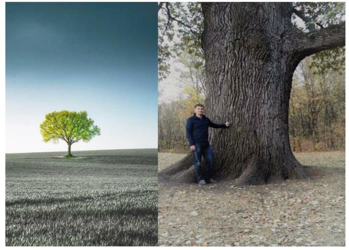 Рис. 7. Дерево с листвой вдали от нас и рядом (фотошоп)