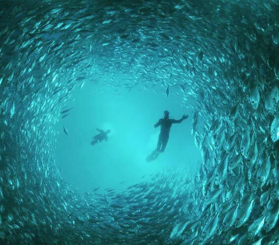 Рис. 9. Мурмурация рыб в океане (фотошоп)
