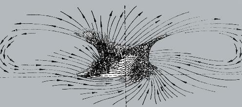 Представим источник излучений или вибраций в полной «пустоте», любую материю в виде вихря (см. Рис. 10). Пусть это будет элементарная частица. От формы вибраций источника в среду окружения отдаляются вихревые, почти сферические, волны излучений. Каков механизм перемещения в данных условиях этих волн? Когда до первой волны колебания вихря нашей элементарной частицы в пространстве никаких вибраций нет. И вот происходит первый полупериод волны как излучение, толчок уплотнённой порции собственной материи в пустоту окружения, от частицы со своей структурой, зарядами и т. д. Градиент при этом будет огромный, как и предполагаемые скорости распространения этих сгустков материи в «пустоту». Вероятно, сам процесс скоротечен, но однозначно заполняет наше виртуальное «ничто» вполне материальными плотностями зарядов, транслируя поле совсем ещё слабых вибраций уплотнения материи. Наконец, прекращается излучение и происходит второй полупериод волны – разрежение внутрь источника, который затем сменяется снова излучением или давлением плотности зарядов следующего периода выброса и т. д. Цикл за циклом, вращаясь внутренняя энергия зарядов самой частицы материи создаёт градиент плотностей и отталкивает предыдущую волну сферы последующей волной изнутри. Очень похоже на то, как мы надуваем воздушный шар, когда с каждой порцией выдоха он становится всё больше и больше, всё более и более заполняя собой пространство. Таким образом, распространяемое вокруг частицы уплотнение среды превращается в самостоятельные формы материи и заполняет ими пространство вот уже миллиарды лет. Да, градиент зарядов в «пустоте» иссякает быстро, тем более источников энергии вовне в нашем случае ещё недостаточно.