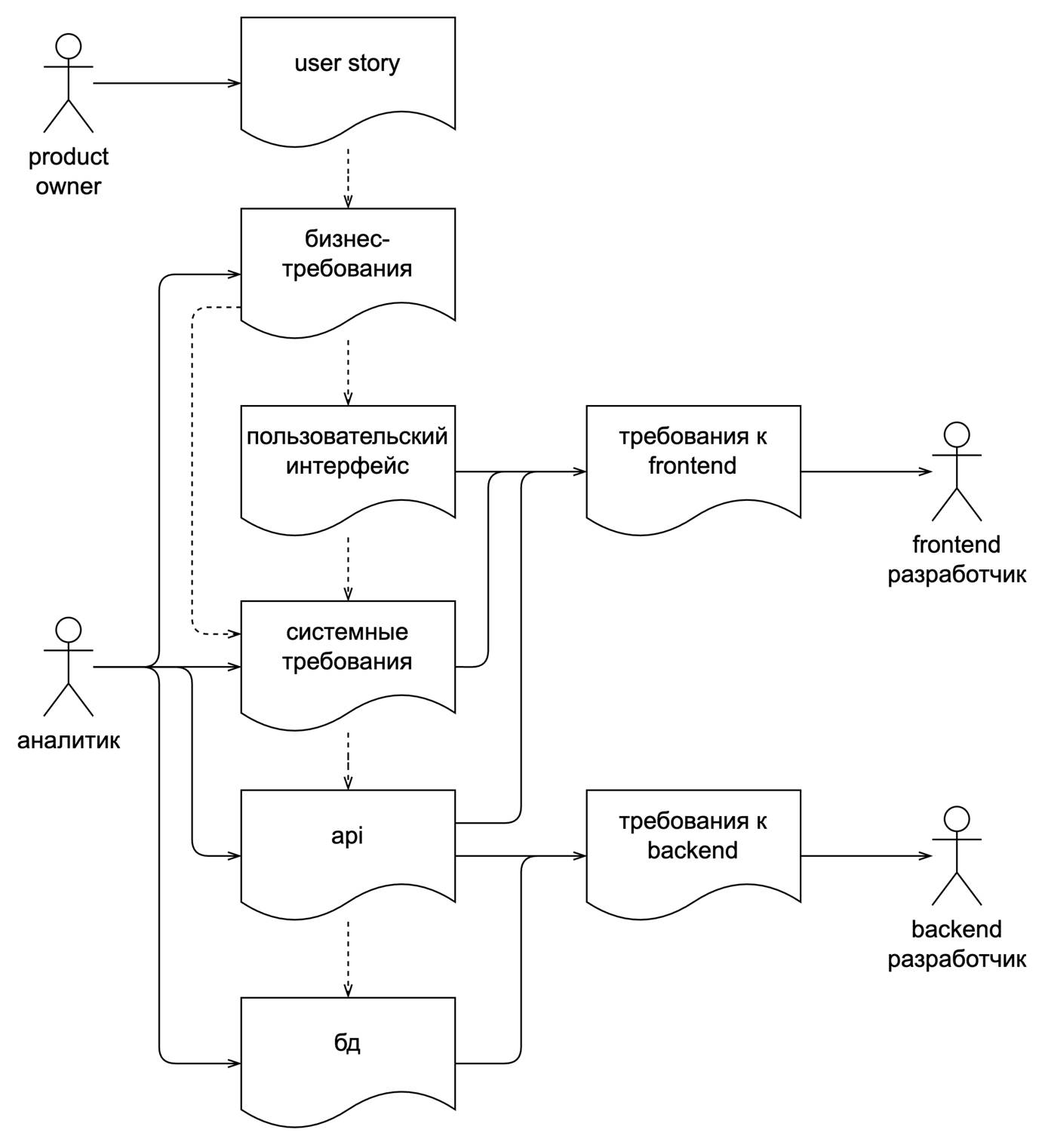 • аналитик занимается как бизнес-, так и системным анализом;