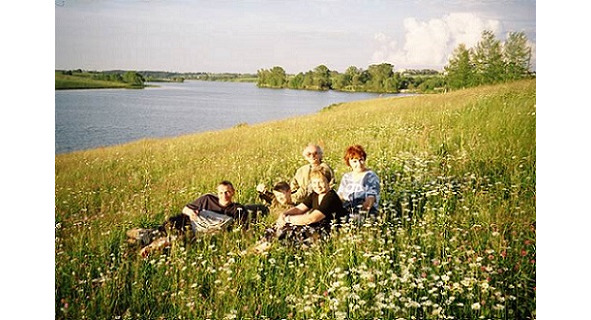 Ваня, Алёша, Вова, Сашуля и Ирина на берегу Содышки. Владимир. 7 июля 2004 г.