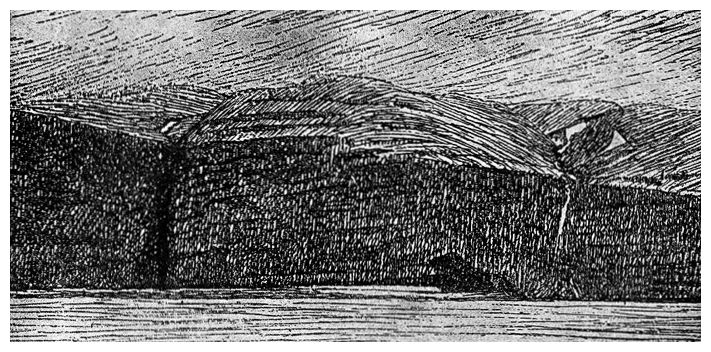 Я рассмеялся и огляделся кругом. Но и в самом деле, вдали виднелась земля! Две горные вершины синели над голубым морским горизонтом, далеко-далеко, примерно в 50 морских милях.