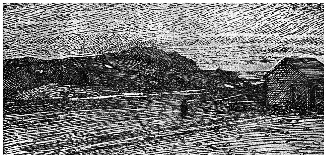 Это говорило еще об одной силе, играющей тоже значительную роль в образовании поверхности этого оголенного острова, а именно о ветрах. Здесь и в самом деле бывают сильные ветры, особенно осенью и зимой, когда они переходят в свирепые штормы, уносящие с собой все движимые предметы. Конечно, на сырой или мерзлой почве не скапливаются ни пыль, ни гравий, которые бы ветер мог сметать; зато он сметает снег со всех гребней и склонов и оголяет их. Снег здесь слишком мало защищен от ветра, чтобы образовывать глубокие сугробы на этих округленных поверхностях.