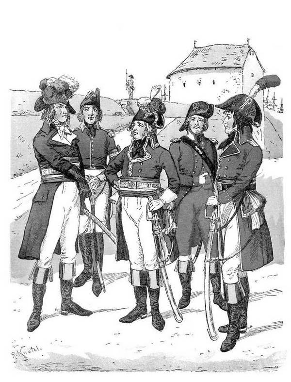 Офицеры республиканской армии в 1793–1794 гг.: уполномоченный народный представитель, адъютант, генерал, морской офицер, военный комиссар. Художник Р. Кнётель