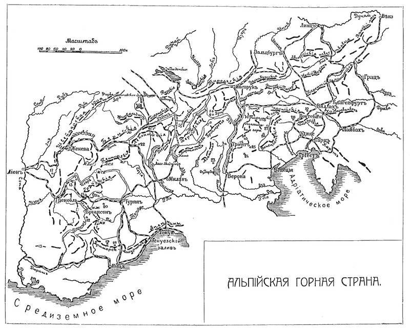 Альпы. Карта из «Военной энциклопедии» (СПб., 1911–1915)