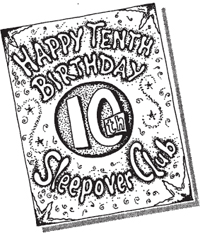 For the Artist’s Badge we could design any kind of card. Frankie, Fliss, Lyndz and I had just made ordinary birthday cards. Rosie had made a special ‘Happy Tenth Birthday Sleepover Club’ card, complete with a badge.