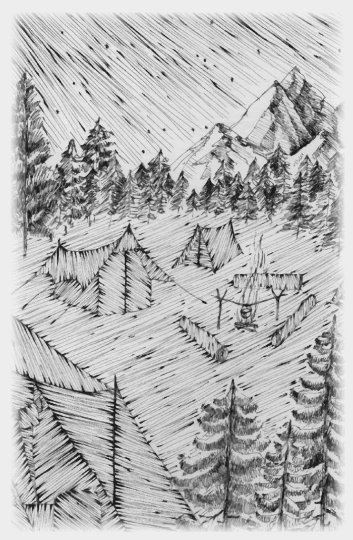 By the time they had established their camp and hastily prepared supper, darkness had enveloped the surroundings. Leonid cherished these late hours when everyone else was asleep, allowing him to sit beside the extinguished fire, gazing up at the stars entangled in the treetops, and listening to the nocturnal sounds of the taiga. No, he needed to sleep; tomorrow, a challenging crossing awaited them. Climbing into the tent, he wrapped himself in an old, homemade plaid (a reminder of Olga), removed his glasses, carefully placing them beside him, and soon drifted off to sleep.