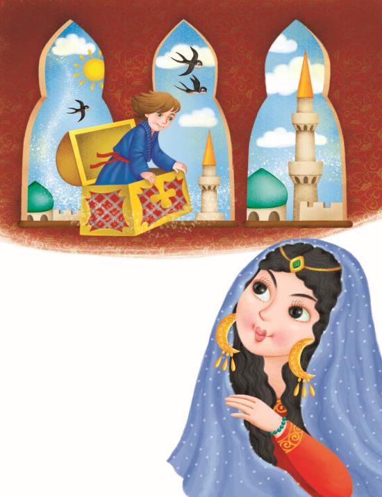Прилетел купеческий сын в Турцию. Там он узнал о здешней принцессе и захотел на неё поглядеть. Уселся он в свой сундук, прилетел прямо на крышу дворца и влез к принцессе в окно.