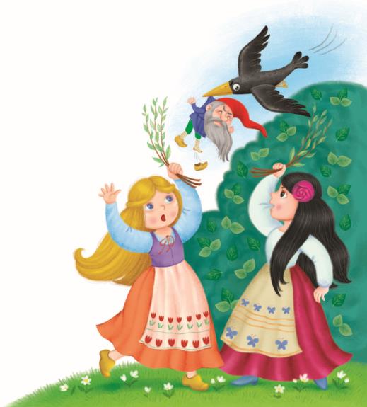 Жила-была на краю леса в избушке бедная вдова с двумя дочерьми. Одна из сестёр была белокурая, и прозвали её за это Беляночкой, а вторую за яркий румянец – Розочкой. Обе девушки были добрые, весёлые и красавицы, каких свет не видывал. И вот однажды отправились они в лес за дровами. Идут по тропинке и вдруг слышат какой-то писк под ногами. Глядь, а там, возле бревна маленький человечек топчется. Лицо сморщенное, злое, глазки красные, и ругается во всё горло. Оказалось, что это гном кончиком своей огромной бороды за расщелину в бревне зацепился и никак выпутаться не может. Сёстры пытались ему помочь, но у них тоже ничего не получилось. Тогда Беляночка достала из кармана ножницы и отрезала у старичка кончик бороды. Гном тут же скрылся в траве и давай браниться: «Безмозглые курицы! Обрезать бороду – где это видано?!»