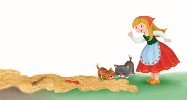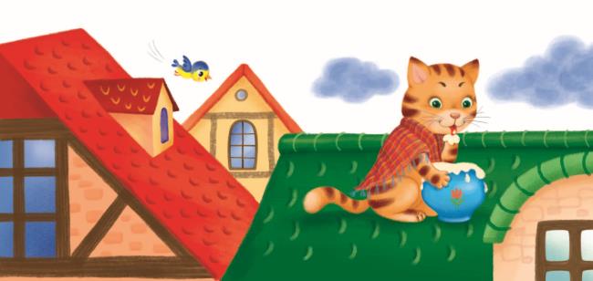 И пока мышка хлопотала по хозяйству, кошка гуляла по крышам. Потом пришла она к заветному горшочку, слизала сверху немного масла и отправилась домой.