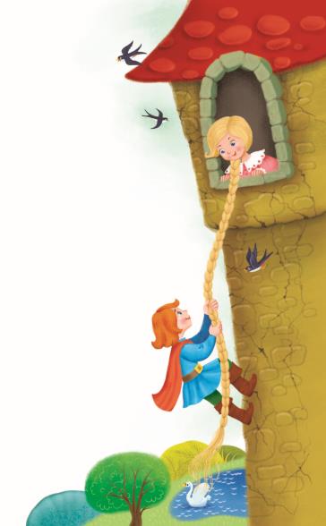 Но недолго радовались муж с женой – забрала у них ребёнка злая колдунья. Поначалу растила она девочку у себя дома, а когда та подросла, поселила ведьма её в глухом лесу, в высокой башне без дверей. Каждый раз, как ведьме нужно было попасть внутрь этой башни, Рапунцель плела из своих длинных волос косу и свешивала её из окошка. По косе колдунья и поднималась наверх.