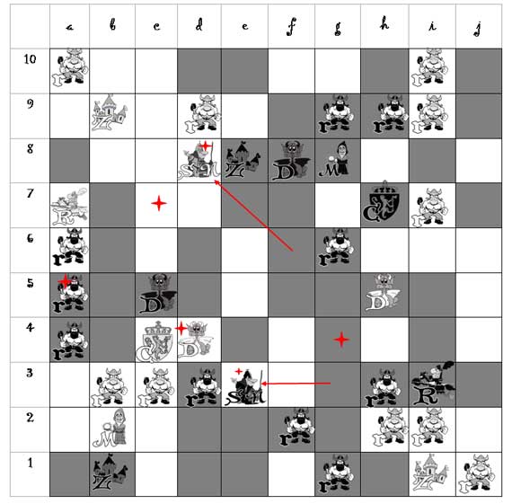 (Темный Странник перемещается на поле e3 к Темному Наемнику)