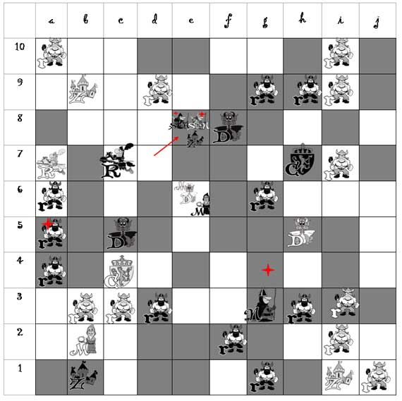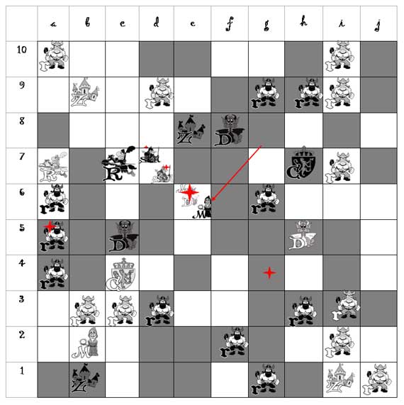 (Темный Маг перемещается на поле e6, чтобы срубить Светлого Дракона)