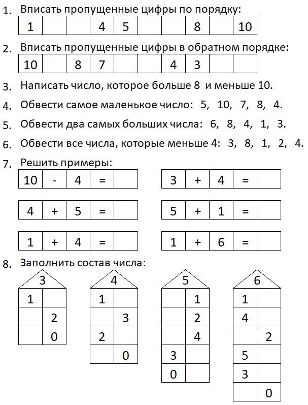 СОСТАВ ЧИСЛА В ПРЕДЕЛАХ 10