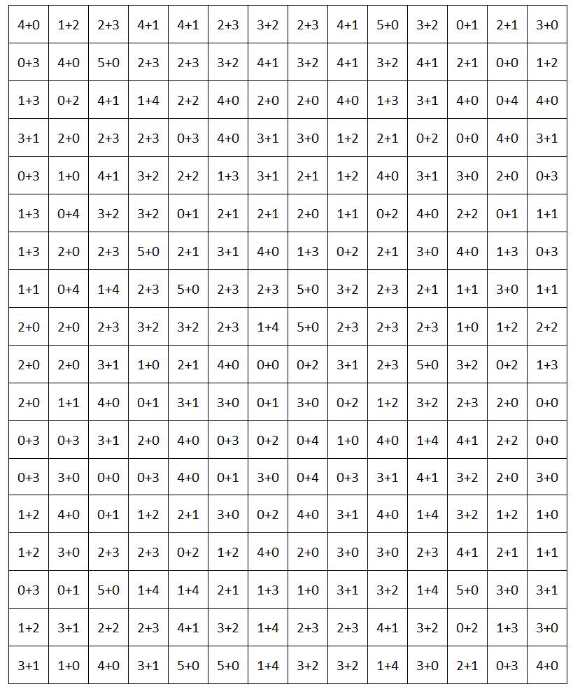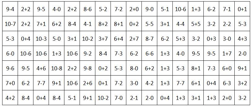 Раскрасьте ячейки, в которых сумма или разность равна 4.