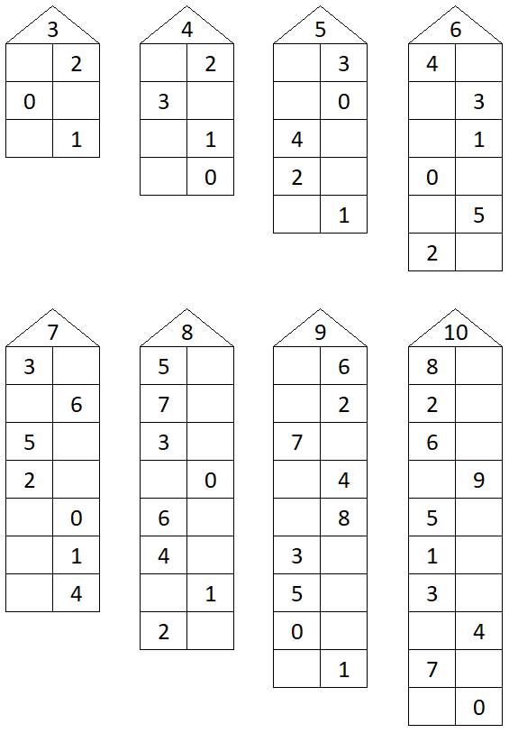 Задание: заполнить пустые клетки числами.