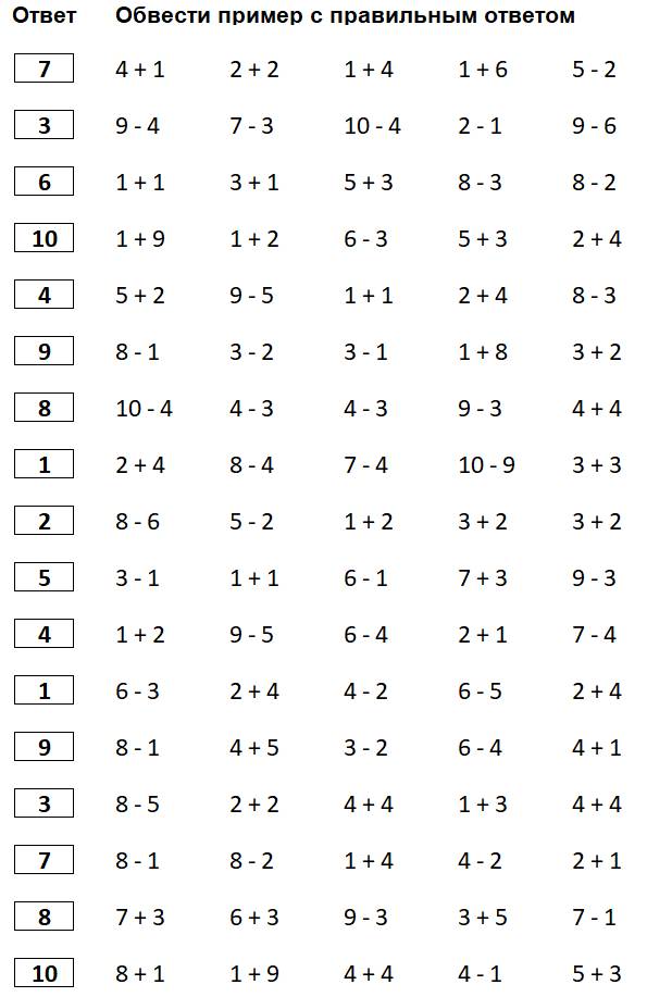 Математика: примеры до 10 для дошкольников