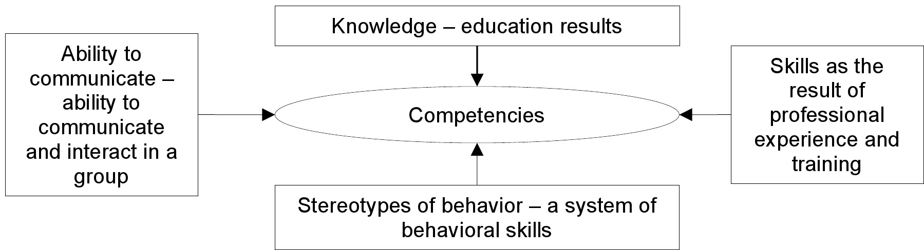 In turn, competency is "a group of interrelated behavioral actions, which, when they are manifested by the candidate and considered by the observer, characterize competence in a specific aspect of the work performed"[5]. The concept of competence is broader than competency because the latter is included in its composition as the ability of the individual to carry out effective professional activities, using knowledge and skills in practice. The components of competency are presented in Fig. 1.