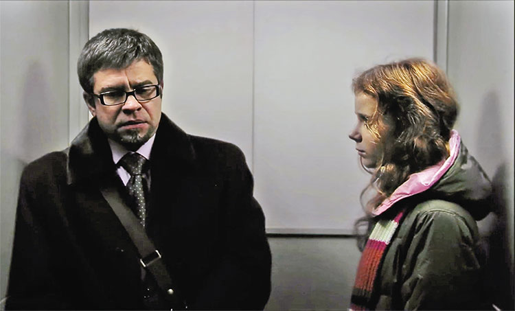 Мы вернемся к режиссерским приемам, когда зритель знает больше, чем персонаж, когда зритель знает меньше, чем персонаж, и когда зритель узнает о событии или обстоятельстве вместе с персонажем. Данное событие становится поворотным для персонажа (для девочки). Зритель видит лишь ее испуганное и взволнованное лицо, а полная картина раскрывается только в финале, когда выясняется, что мужчина в женском халате – отец девочки, который оказался в квартире в качестве любовника мамы мальчика.