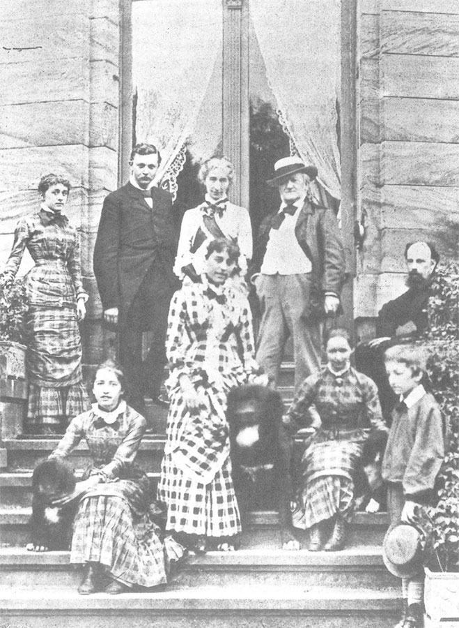 Вагнеры и домашний учитель Зигфрида Генрих фон Штайн на ступенях заднего крыльца виллы Ванфрид. В стороне – художник Павел Жуковский и Зигфрид с шляпой в руке