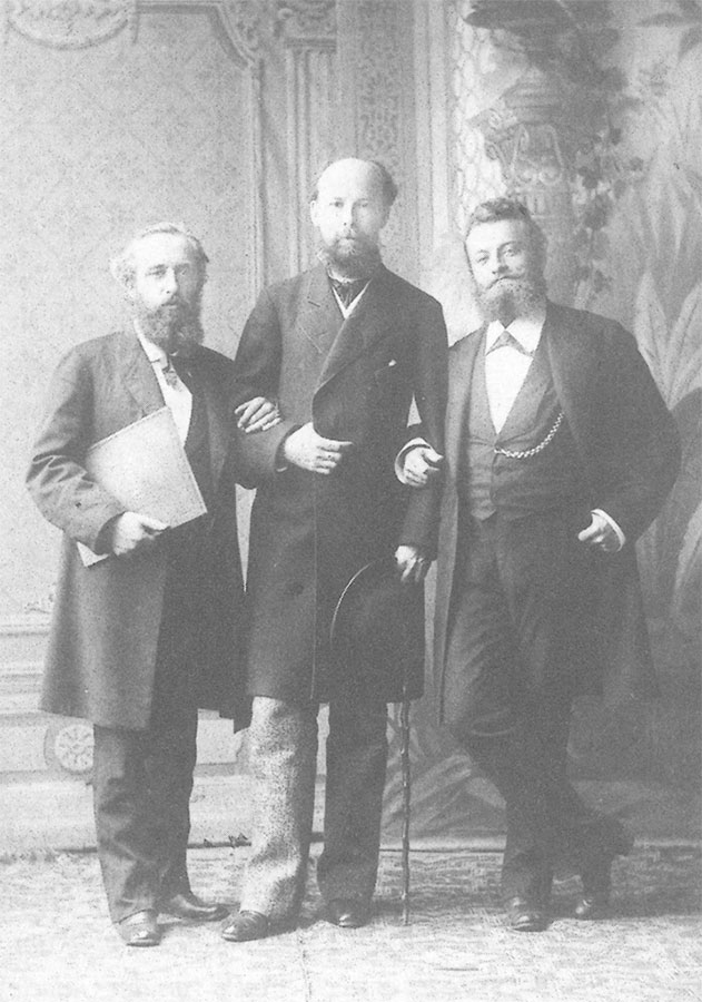 Участники первой постановки Парсифаля (слева направо): дирижер Герман Леви, художник Павел Жуковский и машинист сцены Карл Брандт