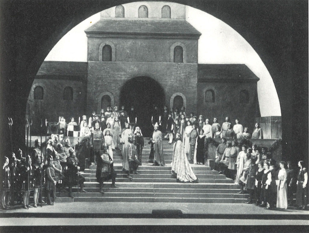 После пережитого разочарования, связанного с неудачной гамбургской премьерой Повеления звезд, Зигфрид дал несколько концертов в Гамбурге и Штеттине. Концерты в Штеттине предшествовали тамошней премьере Весельчака, причем исполнение этой оперы под управлением капельмейстера Эдуарда Мёрике (полного тезки немецкого поэта-романтика) необычайно понравилось автору. А если к этому добавить, что при изготовлении декораций постановщики использовали эскизы самого Зигфрида, становится понятно, почему он стал все больше признавать преимущества провинциальных сцен, на которых к постановкам его опер относились ответственнее. Одним из представлений в Штеттине он по установившейся доброй традиции дирижировал сам. В марте состоялась премьера Медвежьей шкуры в Крефельде и Повеления звезд в Праге и Вене. Пражской премьерой дирижировал будущий прославленный генеральный музыкальный директор Прусской королевской оперы (после Первой мировой войны – Берлинской государственной оперы) Лео Блех. По возвращении в Байройт Зигфрид продолжил работу над партитурой Банадитриха, однако ему уже нужно было приступать к исполнению переданных матерью обязанностей руководителя фестиваля и помимо репетиций тратить массу времени на решение организационных вопросов и на совещания, преимущественно с Адольфом фон Гроссом. Передав всю полноту власти сыну, Козима старалась во время фестиваля избегать лишних волнений и удалилась в предоставленное ей Гроссом имение Ризенгут. В принципе, Зигфрид не торопился пересматривать старые постановки, сделанные в царствование его матери, и вводил лишь некоторые изменения в их сценографию и в мизансцены с участием хоров в Лоэнгрине. Однако для консервативной прессы и публики этого оказалось достаточно, чтобы обвинить его в искажении замысла отца. А ведь он всего лишь оживил статичный хор, поставив перед отдельными исполнителями индивидуальные задачи, в результате чего каждый из хористов приобрел свое собственное лицо, а все вместе они составили хорошо продуманную общую картину. Здесь Зигфрид повторил то, что он уже с успехом делал в 1901 году при постановке Летучего Голландца. Что касается сценографии, то единственным новшеством стал полукруглый горизонт, позволивший создать зрительную иллюзию необычайной пространственной глубины.
