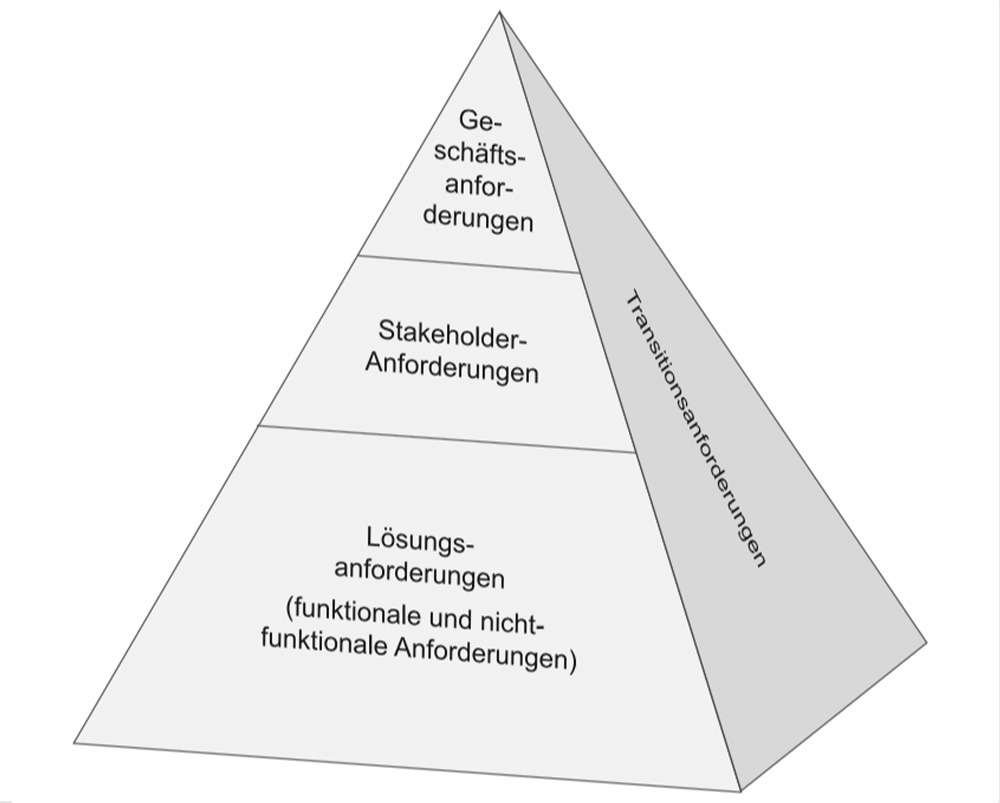 Wie? Lösungsanforderungen (unterschieden in funktionale und nicht-funktionale Anforderungen) beschreiben, auf welchem Weg eine Lösung die Geschäftsanforderungen erreichen soll und systematisieren dabei die Stakeholder-Anforderungen.