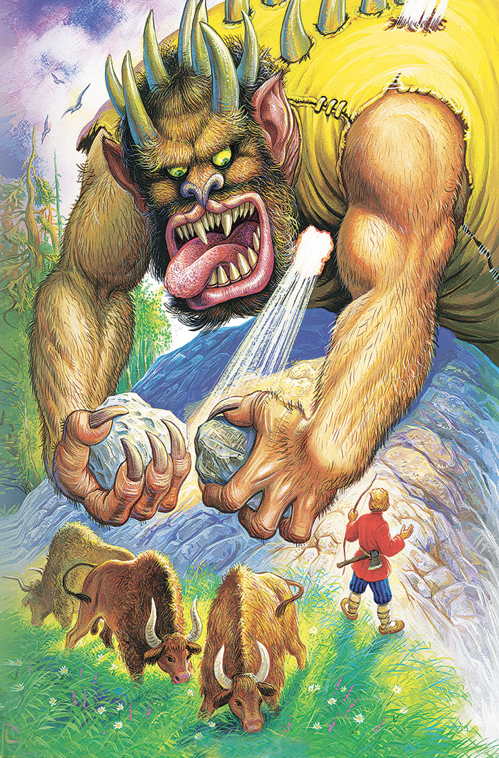 Идолище разъярился, заскрежетал длинными зубами, засверкал жёлтыми глазами. Поднял над головой каменную булаву, на парня замахнулся.