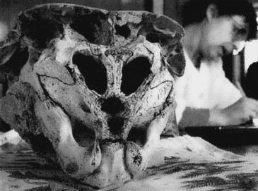 В апреле 1971 г. стало известно о находке в местечке Эль-Бокерин в штате Толима (Колумбия) ископаемого скелета динозавра (игуанодонта) длиной 20 м рядом с человеческим черепом. Процесс окаменения превратил череп в известковый камень серого цвета с белыми шипами. Глазные отверстия почти стерлись, нос длинный; ото лба до основания черепа имеется гребешок. Подбородок слегка скошен, а нижняя челюсть – как у обезьяны. Череп имеет 35 см в длину. Находка была сделана колумбийским антропологом Омеро Энао Марином, профессором Университета дель Кандио в Колумбии, и стала важнейшей вехой в развитии палеонтологии в силу своей особой значимости: впервые в мире были найдены человеческие останки рядом с динозавром; впервые в Америке обнаружили древний образец человека, который, по ассоциации с динозавром-игуанодонтом, должен был жить в ту же эпоху, что и динозавр.