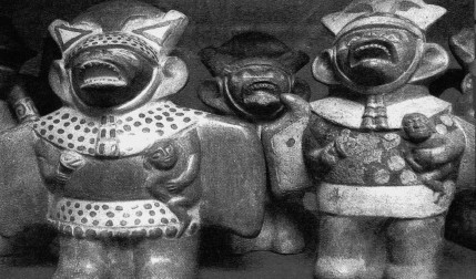 Керамика индейской культуры Тиауанако. Эти фигурки неземных существ оставили нам представители цивилизации Южной Америки, что возводили тысячи лет назад колоссальные храмовые сооружения и начертали на песчаном насте пустыни Наска знаменитые гигантские рисунки.