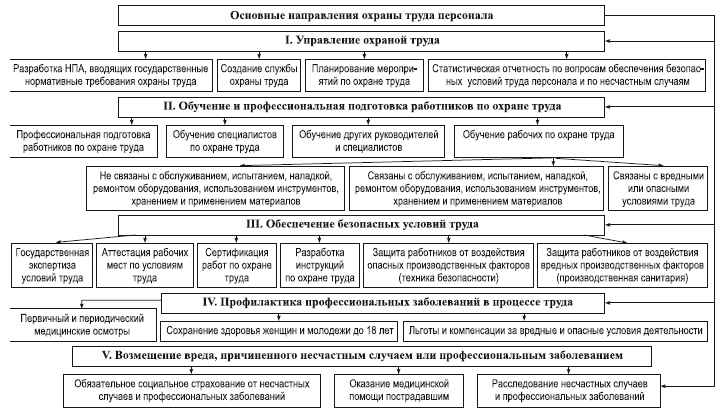 • совершенствование правоотношений и управления в этой сфере, включая внедрение экономического механизма обеспечения ОТ (рис. 1.4).
