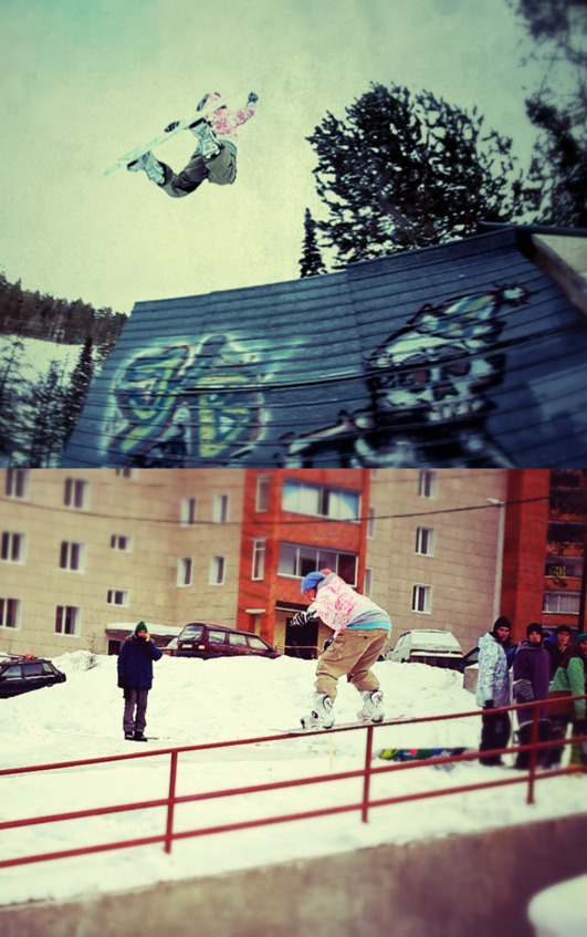 26 февраля 2012 я не написала до сих пор про самую чуму) ахаха)) доставило больше всего)катание в дивногорске с ребятами), там много снега пушистые деревья свежий воздух немного в лесу и на трассах приколы разные и нормальный парк) дивногорск это новый шерегеш андеграунд олдскул атмосфера старая музыка из нфс на горе играет5 дней катаниякрасная перила в наклон, внизу парковка и машины стоят, довольно низкий кикер, мне заходить с бексайда, спиной к периле (сложно, но в зоопарке тоже так было) и разгоняли с лебедкой))))))))))) стрит))) оооооо))))) это вообще!!!!конечно же я подумала что это не мой уровень и полчаса решалась на попытку проехать этот спот)пока думала , с оч крутыми про райдерами))) джоинт фэмили и т д) приехали 3 машины обклеенные наклейкамии чето все раскатались и я поняла что не смогу просто постоять рядом как группи и даже не попробовать)короче лебедка это страшно но как круто!! с 3 раза у меня получилось или как там это пишется правильно 50—50 фс180аути это тоже засняли на видео ееееа))))))))))короче еще несколько спотов с этой крю и + в парке денек поснимаю и через пару недель у меня будет шикарный эдит))))))) НАКОНЕЦ-ТО!!!!, хотя это жестко смотрится почему мне очень нравится стритпотому что там четко осознаешь опасность падения и т дпоэтому постоянно находишься в моменте ЗДЕСЬ И СЕЙЧАС(кстати говоря последние недели 2 я из него вообще не выхожу))))но во время катания в стрите это очень сильно чувствуетсяну и кайф конечно от того что сложно и получается, открываешь свои новые возможности и со страхом находишь общий язык)))уххххххххх—