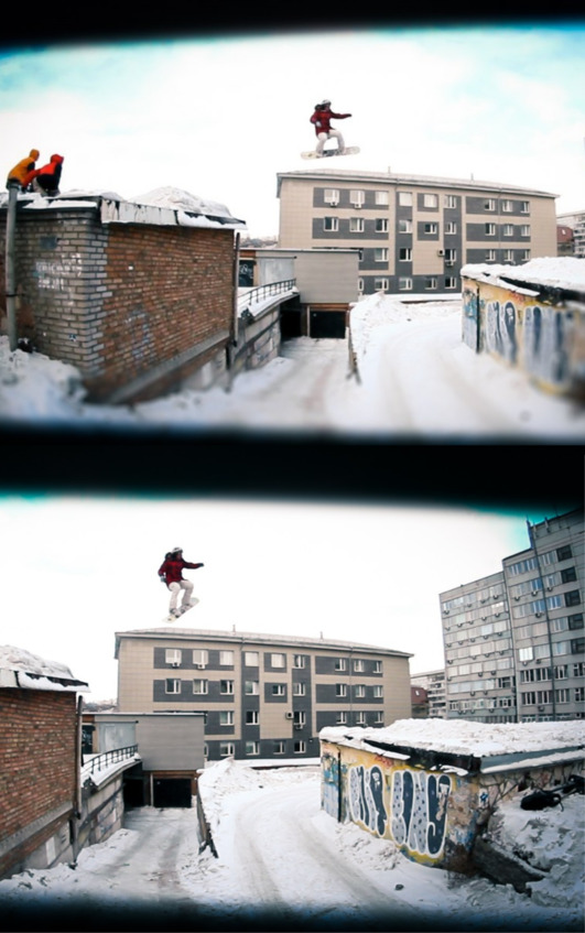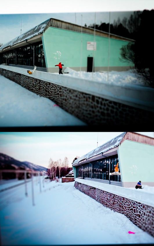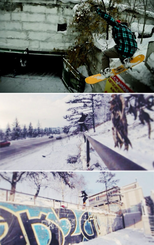 У Кузина в машине играл смешной кавер на Wu-Tang Clan – Shimmy Shimmy Ya в исполнении каких-то девчонок. Мы гоняли по всему городу и снимали шоты. Иногда ездили зря, не находя ничего. Иногда приезжали только в 11 вечера и снимали в ночи с освещением. Иногда нас было двое и не находился оператор, поэтому снимать оказывалось некому. Таскали снег на приземление и кикер лопатами, тестили лебедку, пугали прохожих.