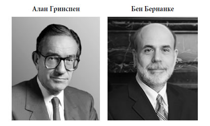 И хотя политика Гринспена была весьма противоречивой, о чем уже написано в ряде книг, он стал главным архитектором благополучия Америки в 1990-х гг. По признанию практически всех ведущих мировых экономистов и политиков, Гринспен был символом денежно-кредитной политики США, нацеливая ее на стимулирование стабильного экономического роста в сочетании с низкой инфляцией и высокой занятостью.