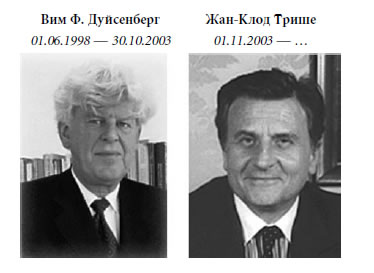 Первым президентом ЕЦБ был голландец Вим Дуйсенберг (Willem F. Duisenberg), а с 1 ноября 2003 г. на посту первого европейского центробанкира его сменил француз Жан-Клод Трише (Jean-Claude Trichet).