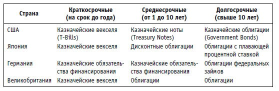Таблица 1.6. Основные разновидности государственных ценных бумаг