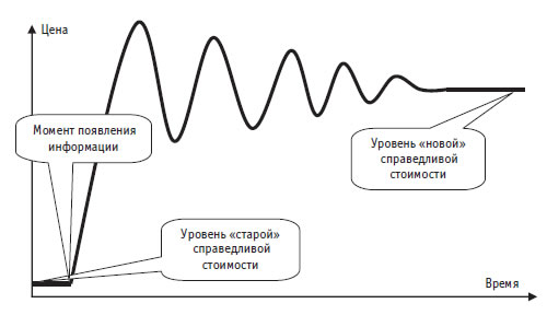 На рис. 1.21 приведен схематичный пример того, как влияет появление новой фундаментальной информации на изменение не только рыночной, но и справедливой стоимости товара и каким образом система приходит к новой точке равновесия, соответствующей новой справедливой стоимости.