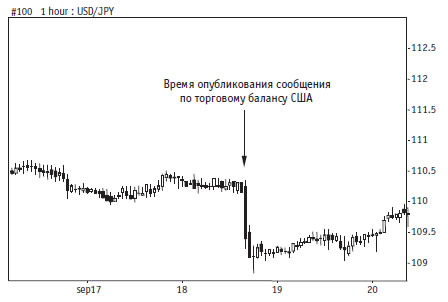 Рис. 1.22. Пример влияния публикации данных фундаментального характера на валютный рынок