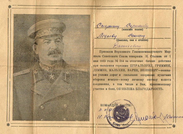 БОЕВОЙ ПУТЬ ЛЕДНЕВА СЕМЁНА ВАСИЛЬЕВИЧА.