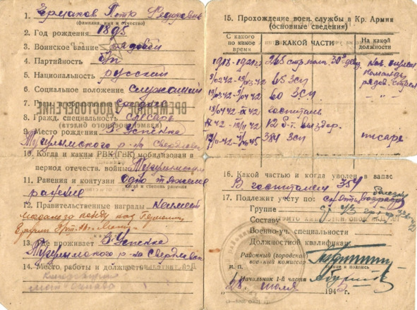 Время призыва июль 1941го года.