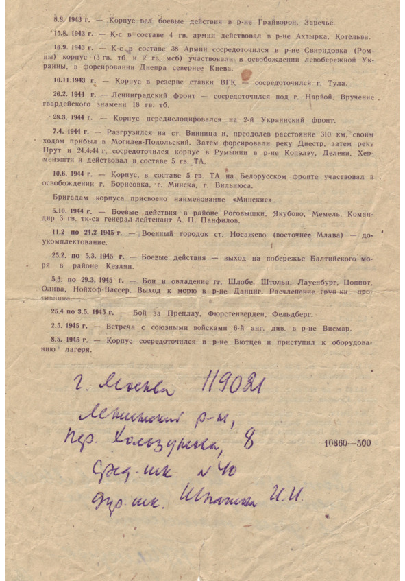 С сентября 1943го по 15.02.1944го – в составе 1го Белорусского фронта.