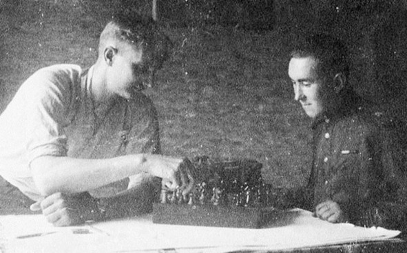 В минуты затишья командир полка за шахматами с нашим братом, Германом. Весна 1945 года, вблизи города Бреслау.