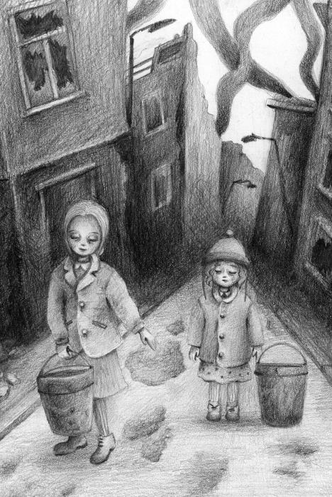 Так мы дошли до пруда в парке. Я наклонилась к проруби, расчистила голыми руками снег вокруг и приняла от сестры первое ведро. Наполнив его, поставила рядом с собой и взялась за второе.
