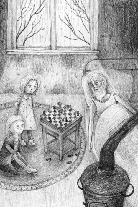 Мы с Валюшей развлекали больного как могли. Сестрёнка играла с ним в шашки, я в шахматы. Валя ликовала, хлопая в ладоши, когда ей удавалось выиграть партию у деда. Тайком мы с ней договорились делиться пайками с дедушкой. Я ломала пополам свой кусочек хлеба и подсовывала его с чаем деду Саше. Но он свою норму знал и упрямо отказывался.