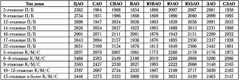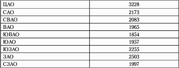 Таблица 5 Средняя стоимость жилья в Москве в 2005 году (долл./кв. м)[10]